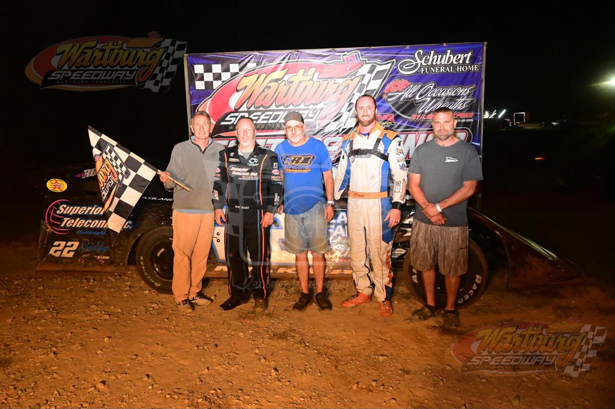 LENOIR CITY, Tenn. (09/23/25) – Mike Weeks made his maiden voyage to victory lane this past weekend at Wartburg Speedway in his Schubert Monument Sales / Superior Telecom No. 22 Rocket Chassis Late Model, powered by a B&B Race Engine.